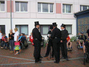 Ein Paar nahm den weiten Weg aus Hamburg auf sich. Eine Mutter kam mit ihrer Tochter, beide im Rollstuhl, aus Kiel. Sie brachten auch ihre Schwester mit, die seit April nach einem Unfall auch im Rollstuhl sitzt.